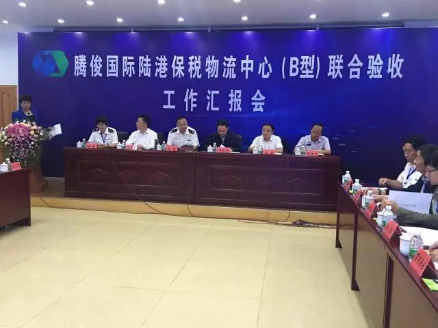 2017年6月30日,由昆明海關(guān)、財政部駐云南省財政監(jiān)察專員辦事處、云南省國家稅務(wù)局、國家外匯管理局云南省分局組成的聯(lián)合驗(yàn)收組,聽取了騰俊國際陸港保稅物流中心建設(shè)情況匯報,對中心基礎(chǔ)和監(jiān)管設(shè)施建設(shè)情況進(jìn)行逐項(xiàng)檢查,觀看有關(guān)設(shè)施功能演示,審閱相關(guān)文檔資料,經(jīng)綜合評審,宣布中心通過聯(lián)合驗(yàn)收。