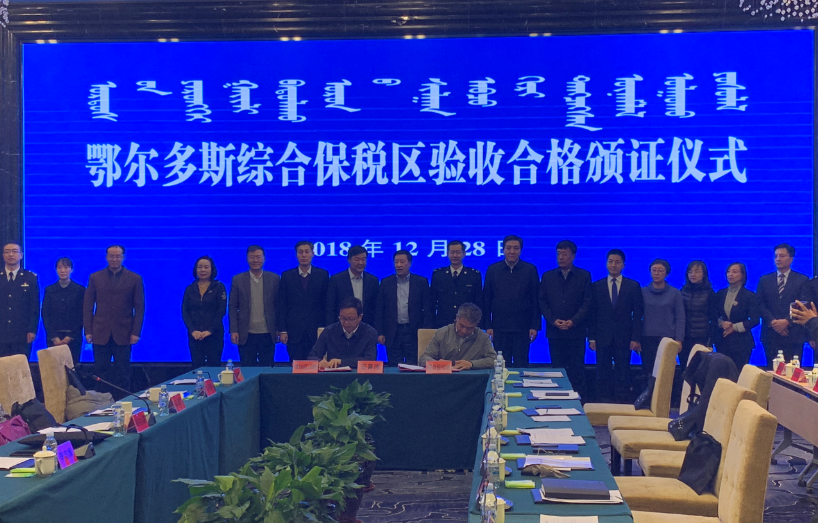 時(shí)間追溯到2012年底,鄂爾多斯啟動(dòng)綜合保稅區(qū)申建工作, 2017年2月14日國(guó)務(wù)院正式同意批復(fù)設(shè)立,經(jīng)過(guò)一年多的實(shí)施建設(shè),2018年12月6日一次性通過(guò)內(nèi)蒙古自治區(qū)的聯(lián)合預(yù)驗(yàn)收,緊接著在12月28日一次性順利通過(guò)由海關(guān)總署牽頭,商務(wù)部、國(guó)家發(fā)展改革委、財(cái)政部等國(guó)家八部委組成的聯(lián)合驗(yàn)收組正式驗(yàn)收。