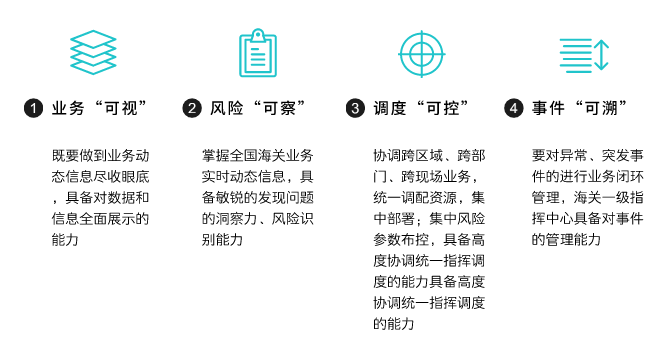 金關(guān)二期海關(guān)總署全景業(yè)務(wù)監(jiān)測(cè)與展示系統(tǒng),從關(guān)區(qū)一張圖引領(lǐng),從一帶一路、陸海新通道、東盟/歐盟進(jìn)出口貿(mào)易、業(yè)務(wù)態(tài)勢(shì)、監(jiān)管通關(guān)、邊小貿(mào)易、互市貿(mào)易、加工貿(mào)易、通關(guān)流程、預(yù)警處置流程等方面展開(kāi),再逐步深入綜合業(yè)務(wù)、動(dòng)植食、商品檢驗(yàn)、統(tǒng)計(jì)分析、督審、監(jiān)察室、口岸監(jiān)管、稅收征管、企業(yè)管理和稽查、衛(wèi)生檢疫、風(fēng)險(xiǎn)防控等11個(gè)業(yè)務(wù)板塊分別展開(kāi)。